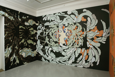Galleri LNM "Paintings and Derives" - "Malerier og Avledninger" Akrylmaleri på lerret montert på tapet som er kopi av maleriet. Oslo 6. Juni - 29. Juni 2008